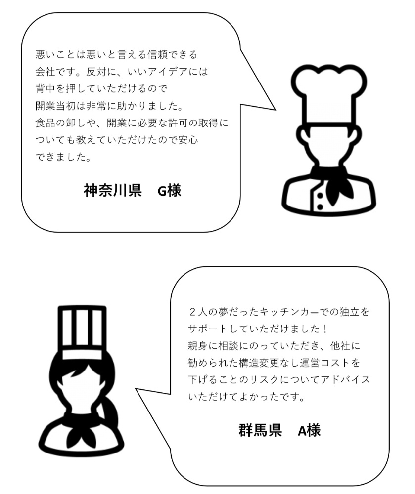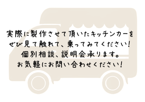 キッチンカーをただ販売する業者ではなく飲食店を経営しながら実際にメニューを考えて調理をし、様々なイベントや行事に出店をしておりました。そんな豊富な経験と知識があるからこそ、お客様目線で物事を真剣に考えて使い安いキッチン作りを心がけております。これから製作事例や失敗しない為の知識をご紹介させて頂きますので参考にして下さい。